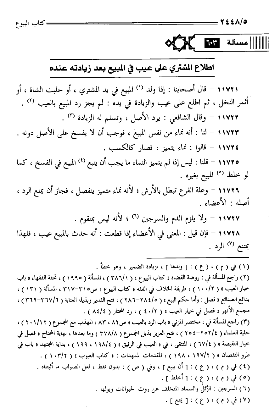 11725 - قلنا: ليس إذا لم يتميز النماء ما يجب أن يتبع المبيع في الفسخ، كما لو خلط المبيع بغيره.