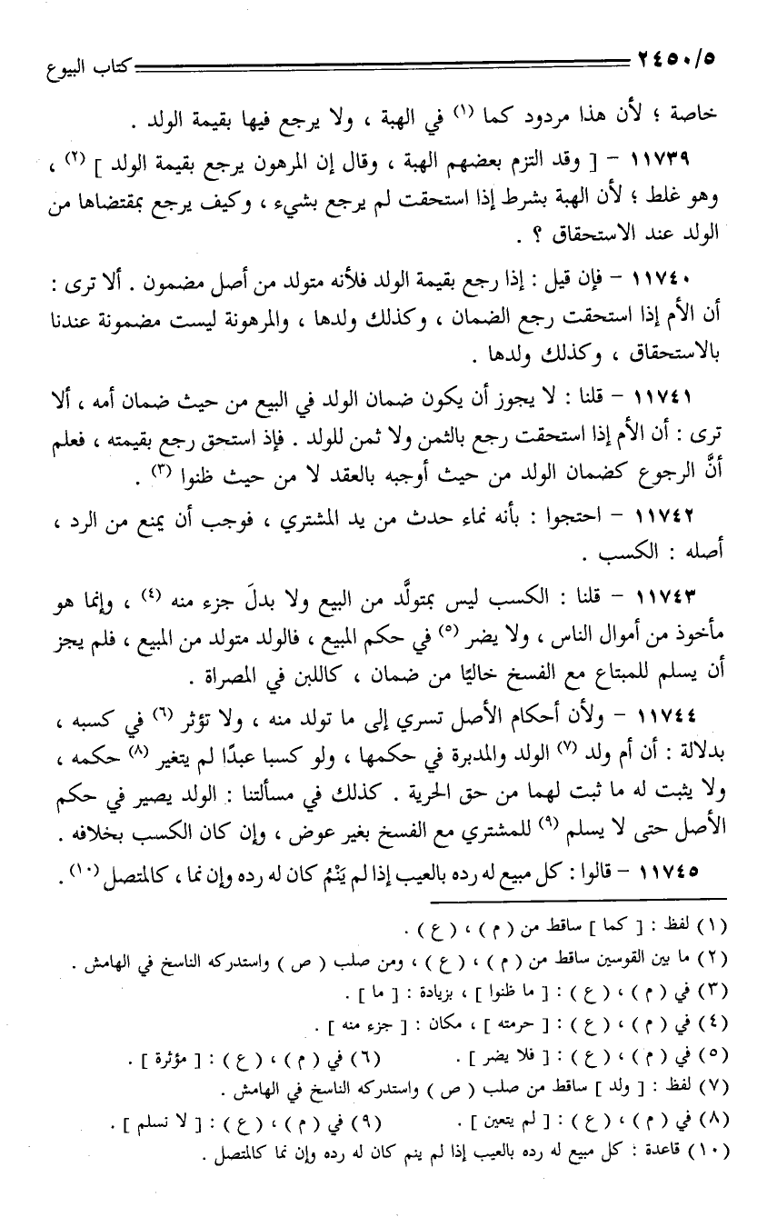 11743 - قلنا: الكسب ليس بمتولد من البيع ولا بدل جزء منه، وإنما هو مأخوذ من أموال الناس، ولا يضر في حكم المبيع، فالولد متولد من المبيع، فلم يجز أن يسلم للمبتاع مع الفسخ خالياً من ضمان، كاللبن في المصراة.