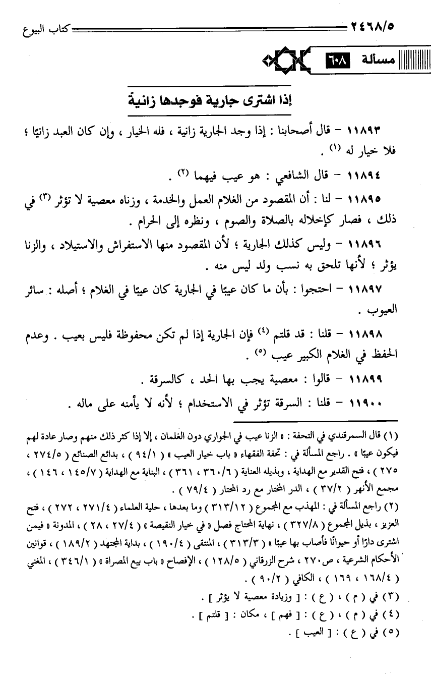 11893 - قال أصحابنا: إذا وجد الجارية زانية، فله الخيار، وإن كان العبد زانياً، فلا خيار له.