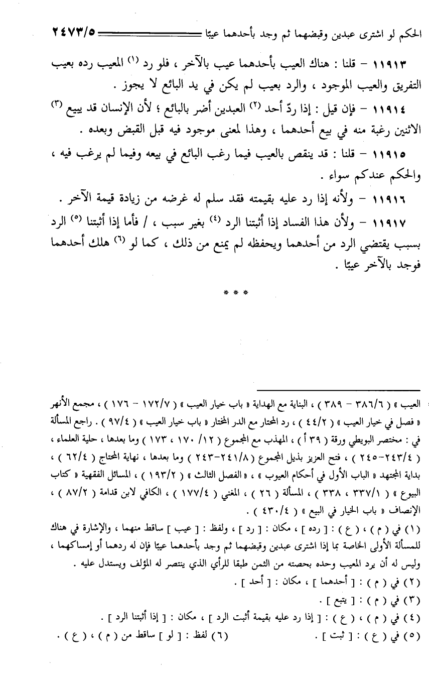 11915 - قلنا: قد ينقص بالعيب فيما رغب البائع في بيعه وفيما لم يرغب فيه، والحكم عندكم سواء.