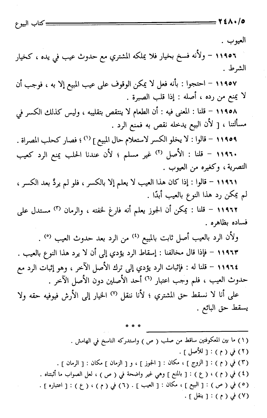 11964 - قلنا له: فإثبات الرد يؤدي إلى ترك الأصل الآخر، وهو إثبات الرد مع حدوث العيب، فلم وجب اعتبار أحد الأصلين دون الأصل الآخر.