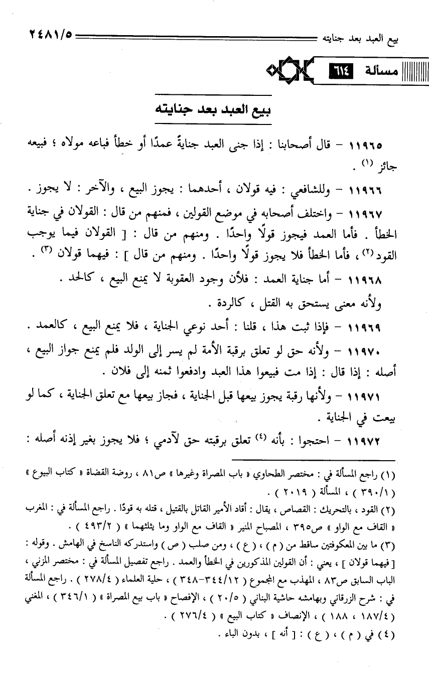 11965 - قال أصحابنا: إذا جنى العبد جناية عمداً أو خطأً فباعه مولاه؛ فبيعه جائز.