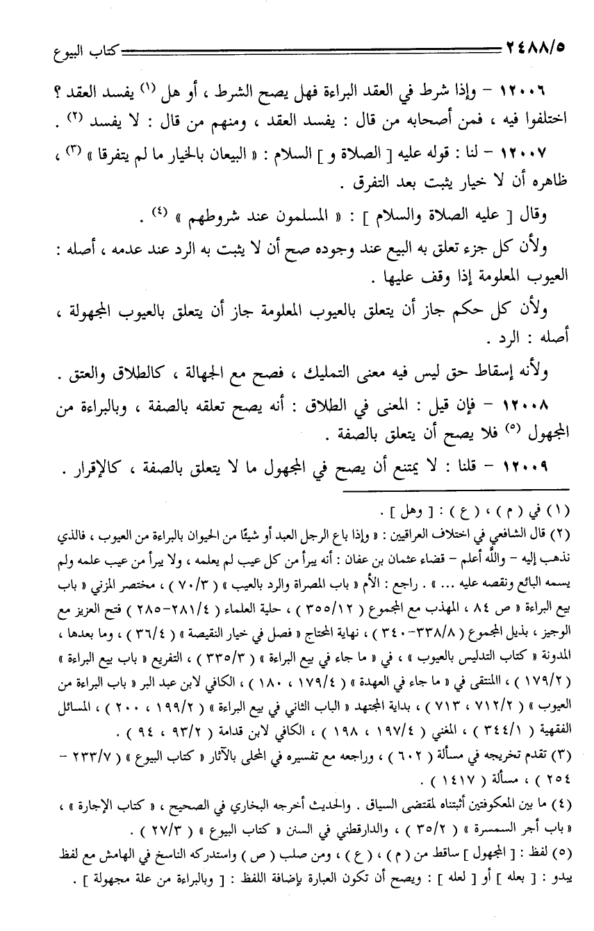 12006 - وإذا شرط في العقد البراءة فهل يصح الشرط، أو هل يفسد العقد؟ اختلفوا فيه، فمن أصحابه من قال: يفسد العقد، ومنهم من قال: لا يفسد.