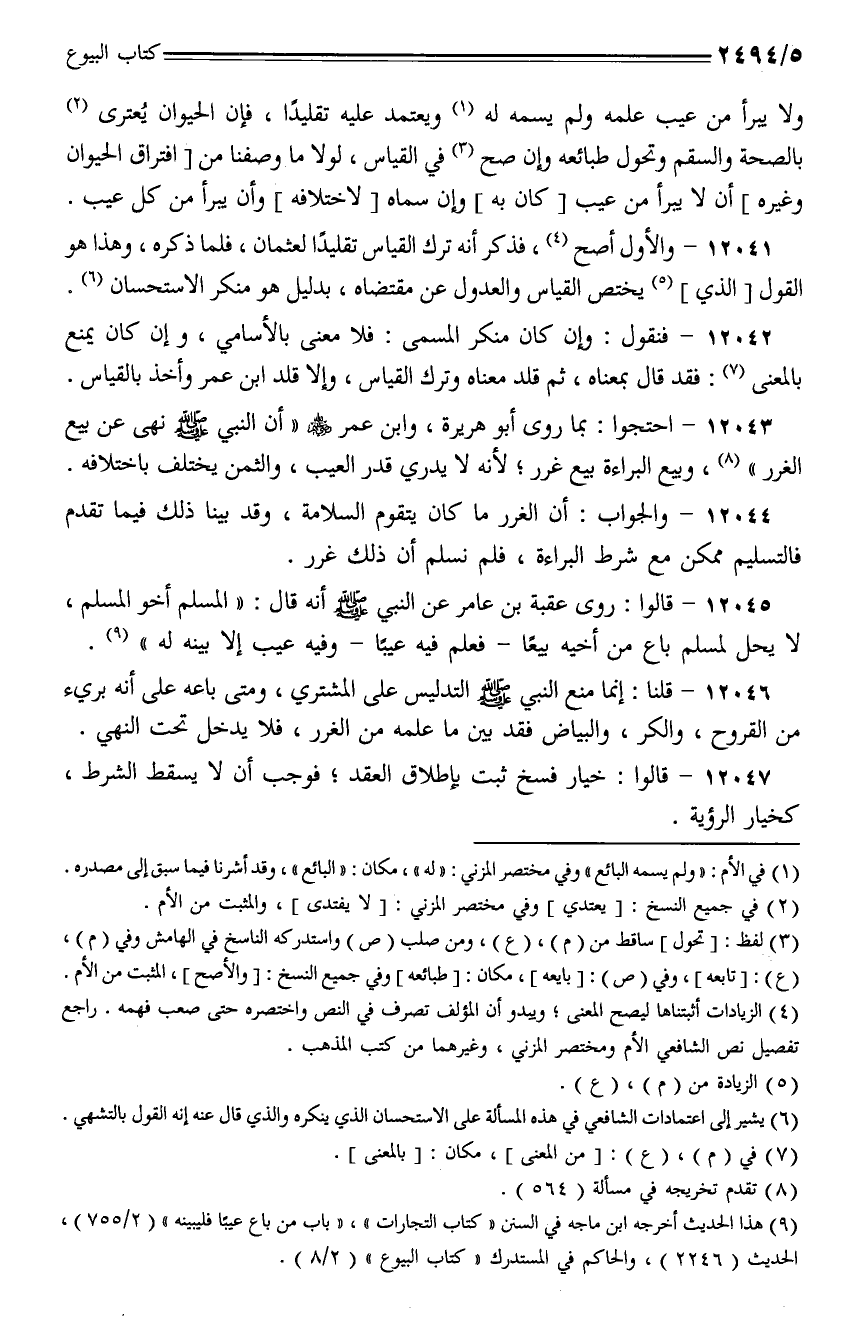 12044 - والجواب: أن الغرر ما كان يتقوم السلامة، وقد بينا ذلك فيما تقدم فالتسليم ممكن مع شرط البراءة، فلم نسلم أن ذلك غرر.