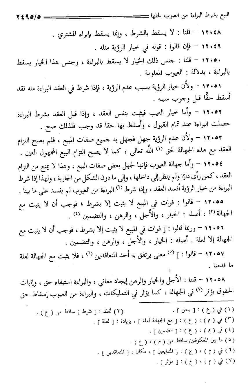 12050 - قلنا: جنس ذلك الخيار لا يسقط بالبراءة، وجنس هذا الخيار يسقط بالبراءة، بدلالة: العيوب المعلومة.