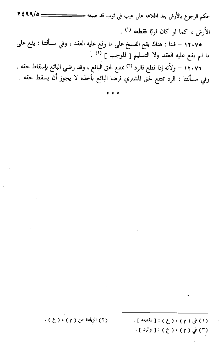 12075 - قلنا: هناك يقع الفسخ على ما وقع عليه العقد، وفي مسألتنا: يقع على ما لم يقع عليه العقد ولا التسليم [الموجب].