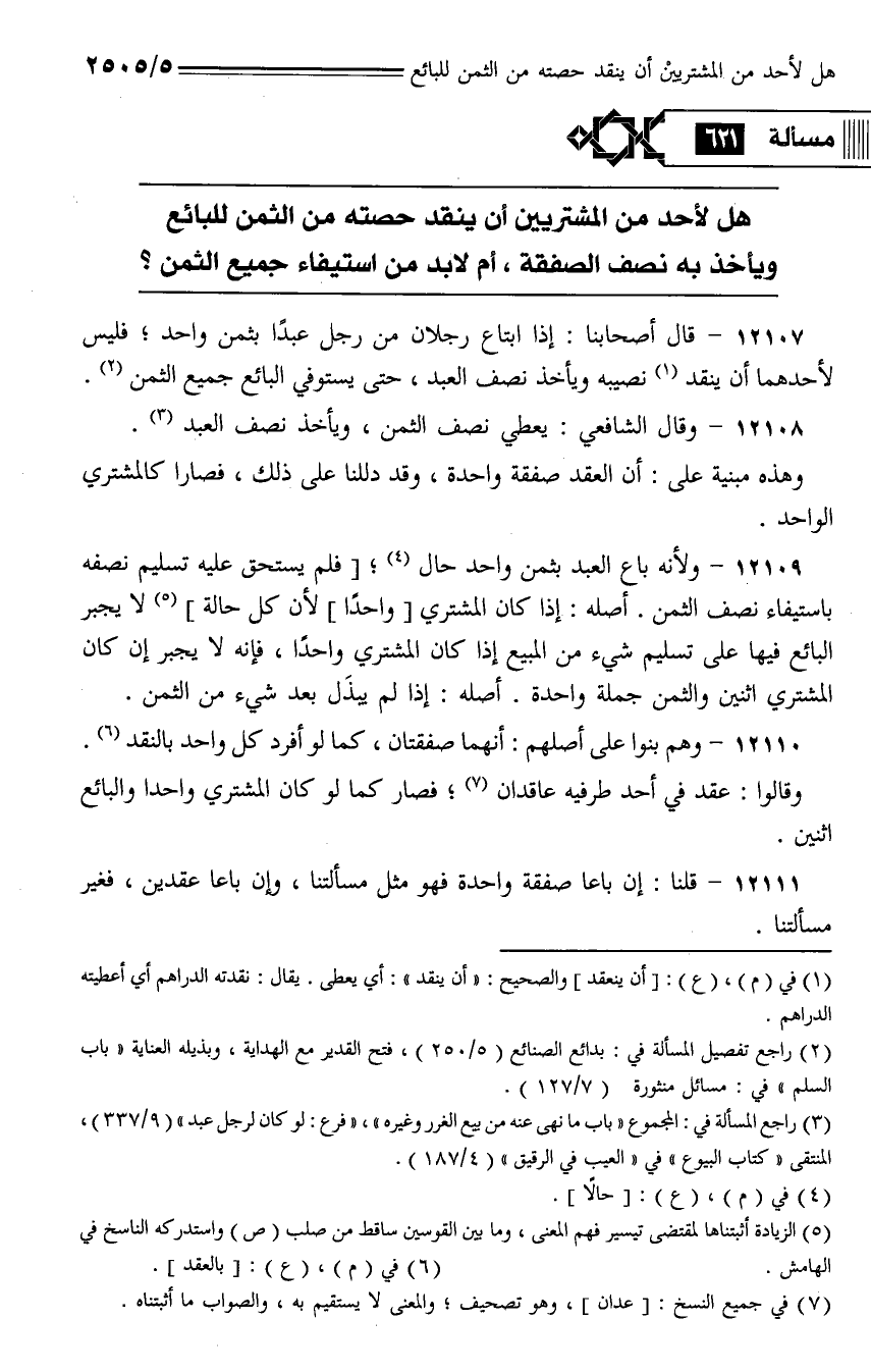 هل لأحد من المشتريين أن ينقد حصته من الثمن للبائع ويأخذ به نصف الصفقة، أم لا بد من استيفاء جميع الثمن؟
