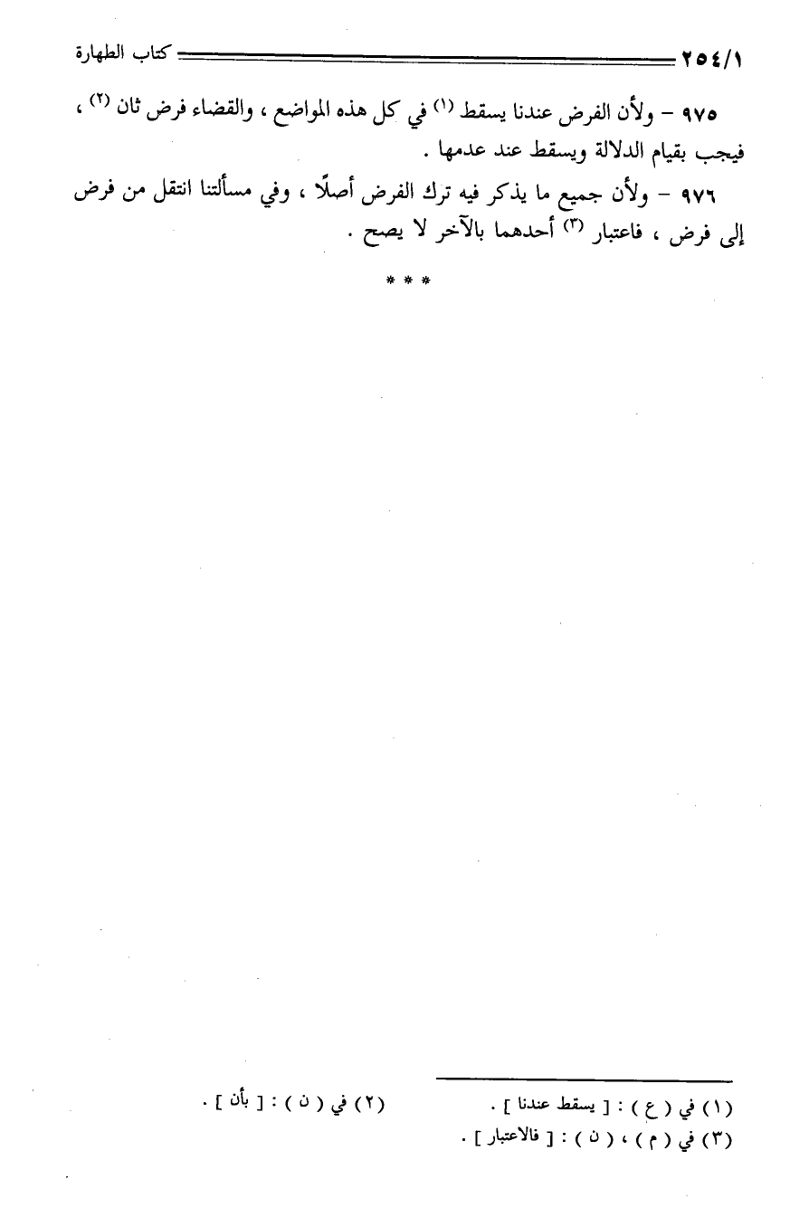 975 - ولأن الفرض عندنا يسقط في كل هذه المواضع، والقضاء فرض ثان، فيجب بقيام الدلالة ويسقط عند عدمها.