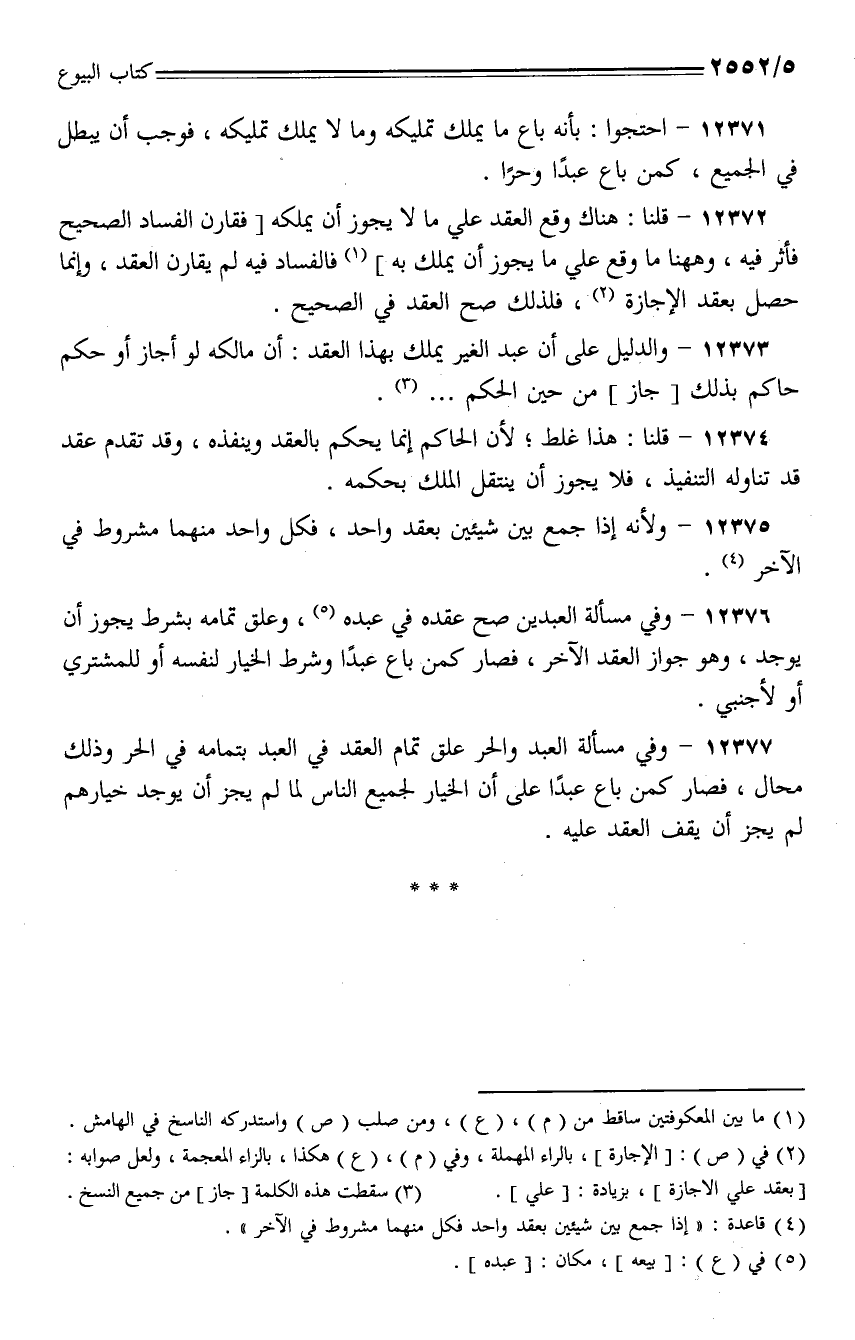 12376 - وفي مسألة العبدين صح عقده في عبده، وعلق تمامه بشرط يجوز أن يوجد، وهو جواز العقد الآخر، فصار كمن باع عبداً وشرط الخيار لنفسه أو للمشتري أو لأجنبي.
