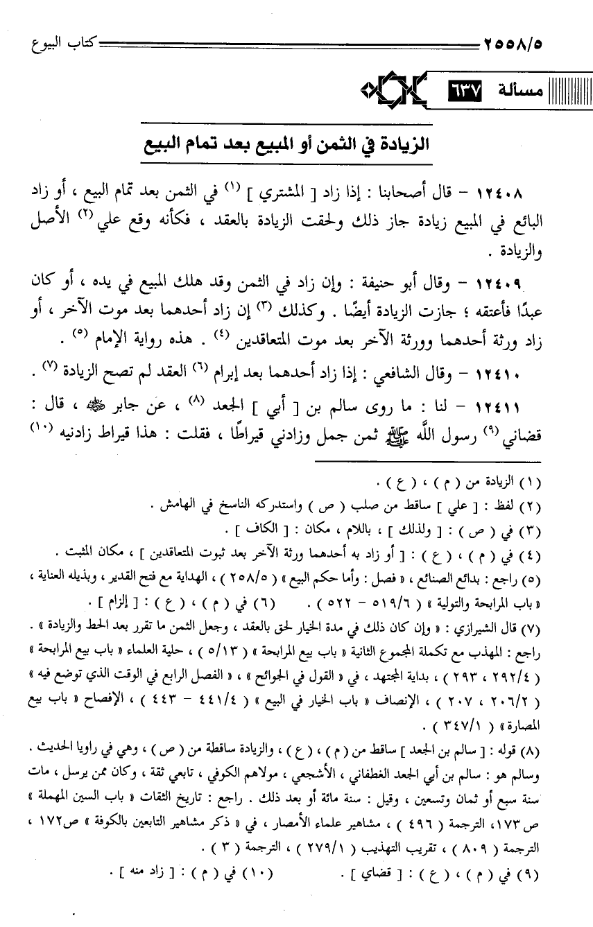 12410 - وقال الشافعي: إذا زاد أحدهما بعد إبرام العقد لم تصح الزيادة.