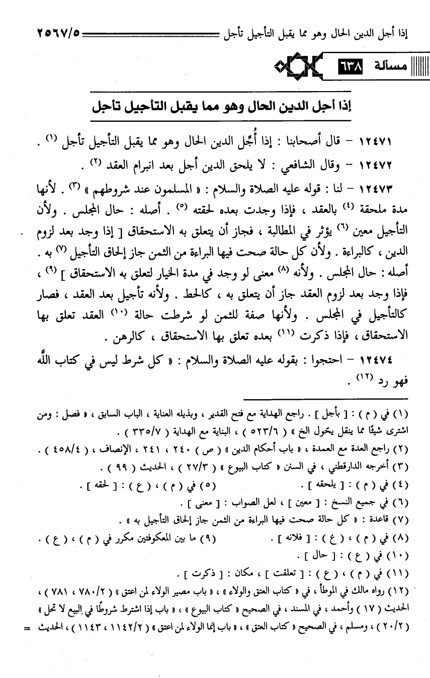 12472 - وقال الشافعي: لا يلحق الدين أجل بعد انبرام العقد.