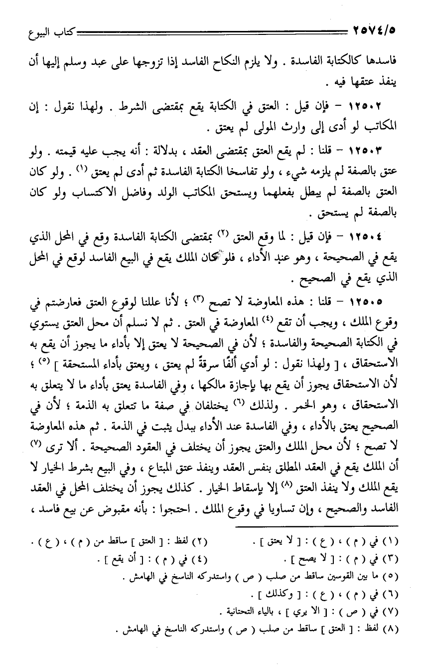 12502 - فإن قيل: العتق في الكتابة يقع بمقتضى الشرط. ولهذا نقول: إن المكاتب لو أدى إلى وارث المولى لم يعتق.