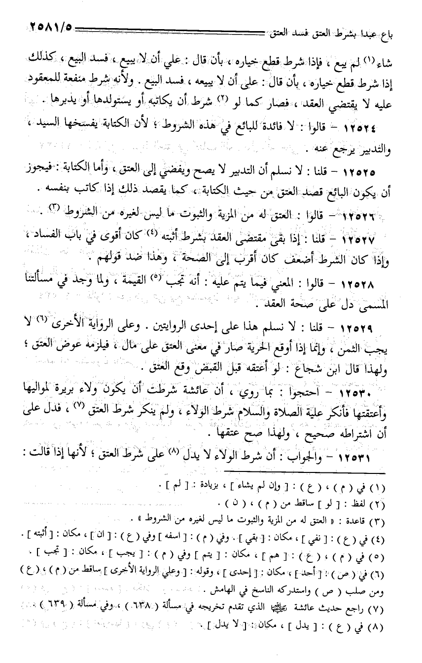 12530 - احتجوا: بما روي، أن عائشة شرطت أن يكون ولاء بريرة لمواليها وأعتقتها فأنكر عليه الصلاة والسلام شرط الولاء، ولم ينكر شرط العتق، فدل على أن اشتراطه صحيح، ولهذا صح عتقها.