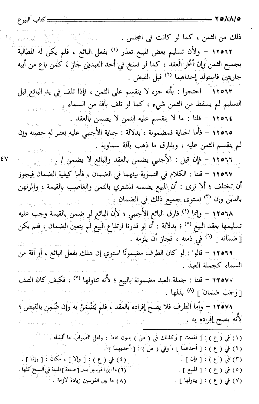 12569 - قالوا: لو كان الطرف مضمونًا استوى إن هلك بفعل البائع، أو آفة من السماء كجملة العبد.