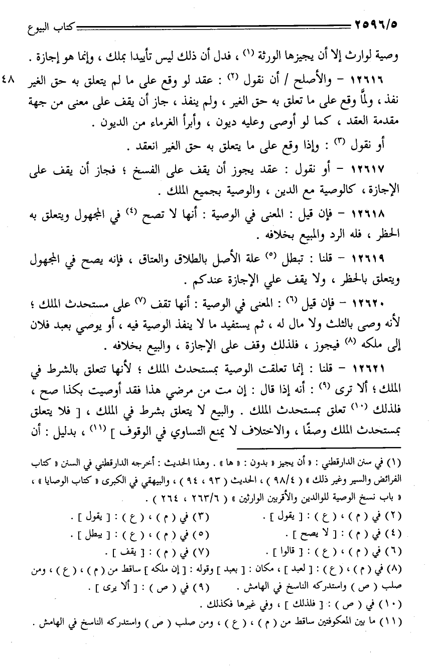 12618 - فإن قيل: المعنى في الوصية: أنها لا تصح في المجهول ويتعلق به الحظر، فله الرد والمبيع بخلافه.