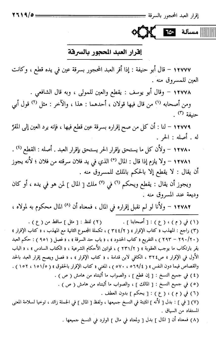 إقرار العبد المحجور بالسرقة