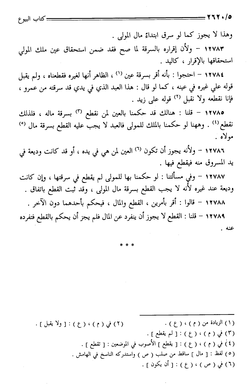 12785 - قلنا: هنالك قد حكمنا بالعين لمن نقطع بسرقة ماله، فلذلك نقطع، وها هنا لو حكمنا بالملك للمولى فالعبد لا يجب عليه القطع بسرقة مال مولاه.