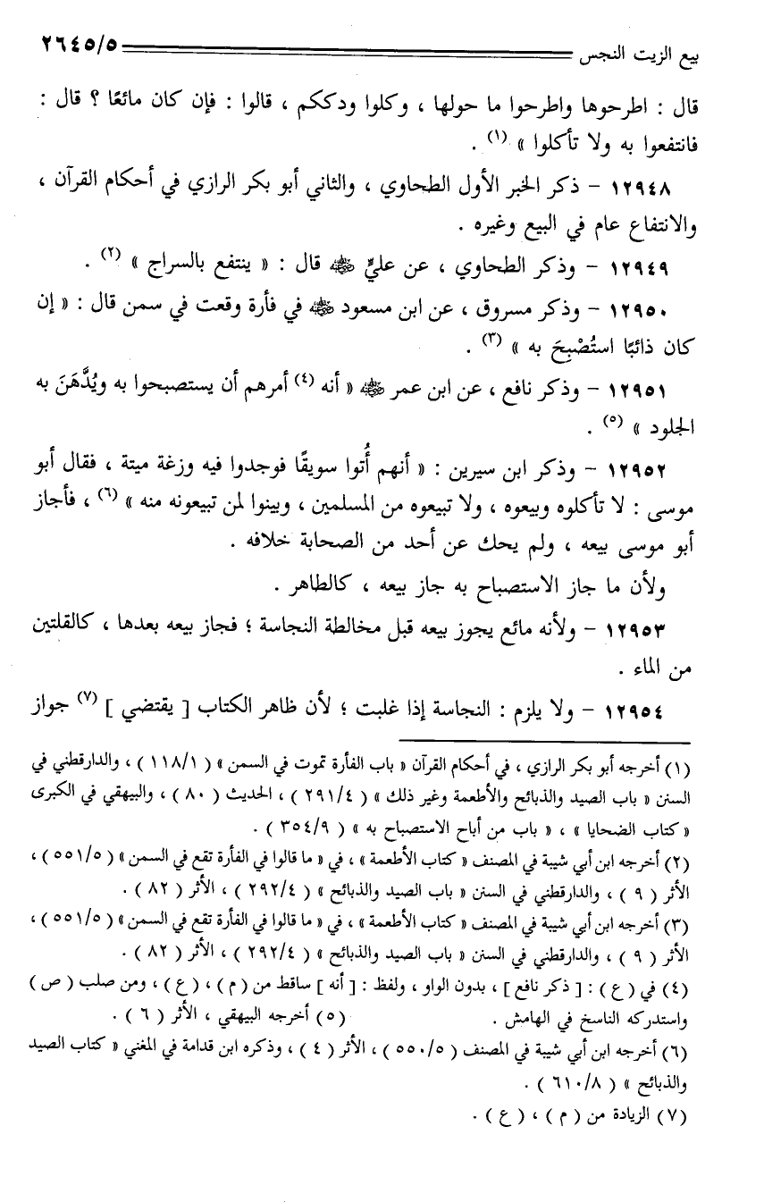 12949 - وذكر الطحاوي، عن علي - رضي الله عنهم - قال: (ينتفع بالسراج).