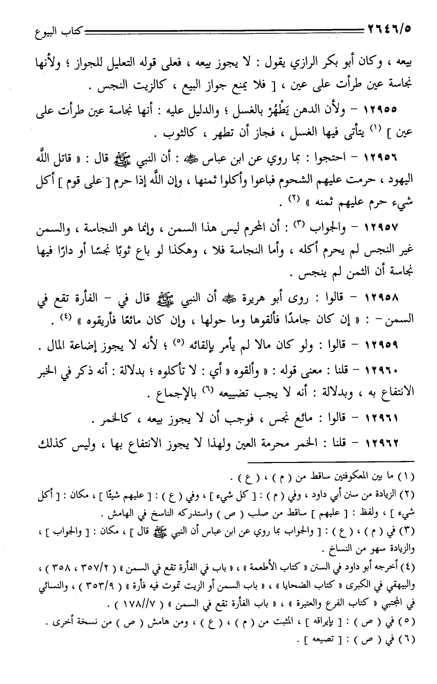 12957 - والجواب: أن المحرم ليس هذا الثمن، وإنما هو النجاسة، والسمن غير النجس لم يحرم أكله، وأما النجاسة فلا، وهكذا لو باع ثوبًا نجسًا أو دارًا فيها نجاسة أن الثمن لم ينجس.