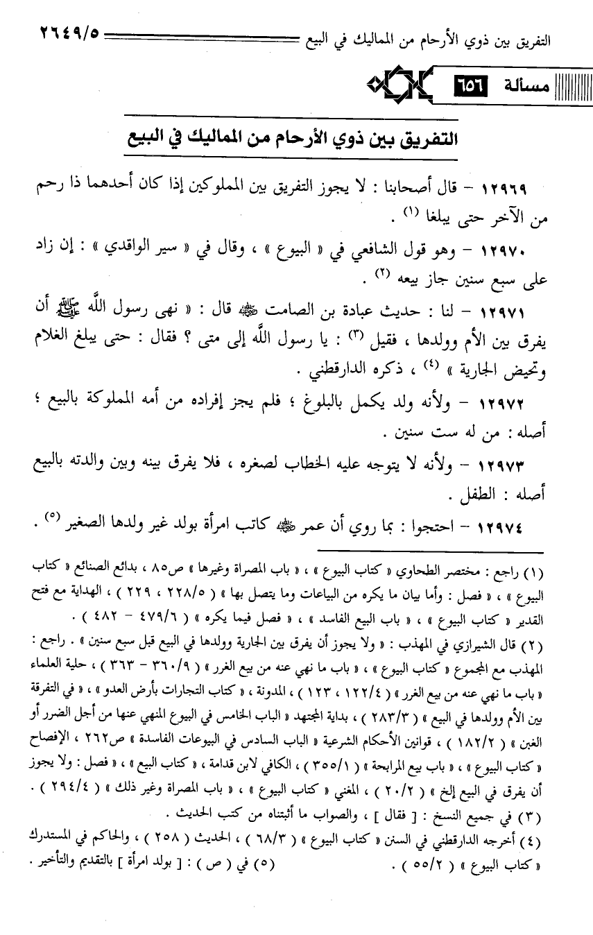 12969 - قال أصحابنا: لا يجوز التفريق بين المملوكين إذا كان أحدهما ذا رحم من الآخر حتى يبلغا.