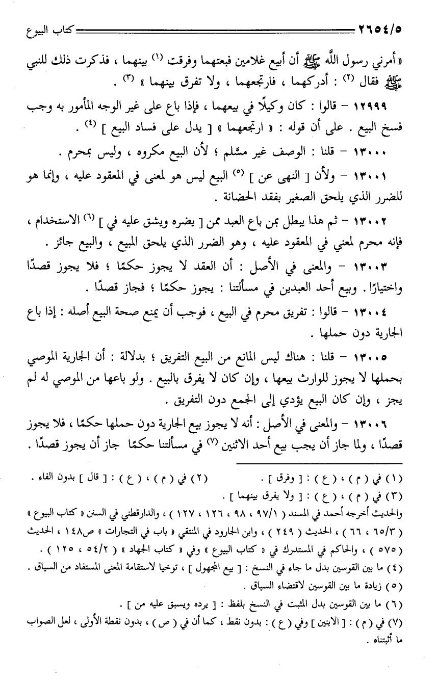 13001 - ولأن [النهي عن] البيع ليس هو لمعنى في المعقود عليه، وإنما هو للضرر الذي يلحق الصغير بفقد الحضانة.