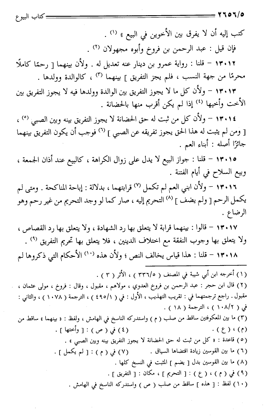 13012 - قلنا: رواية عمرو بن دينار عنه تعديل له. ولأن بينهما [رحمًا كاملًا محرمًا من جهة النسب، فلم يجز التفريق] بينهما، كالوالدة وولدها.