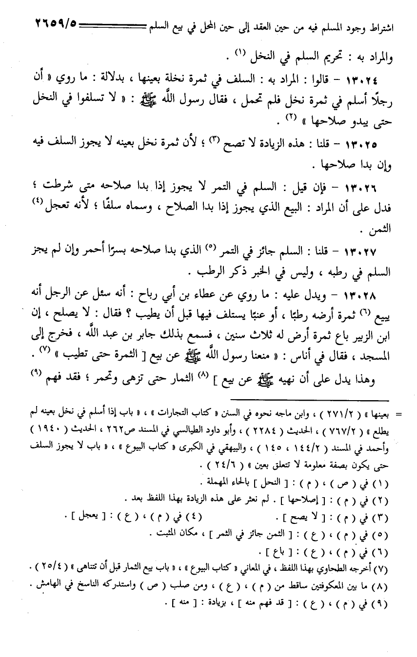 13024 - قالوا: المراد به: السلف في ثمرة نخلة بعينها، بدلالة: ما روي (أن رجلًا أسلم في ثمرة نخل فلم تحمل، فقال رسول الله - صلى الله عليه وسلم -: (لا تسلفوا في النخل حتى يبدو صلاحها).