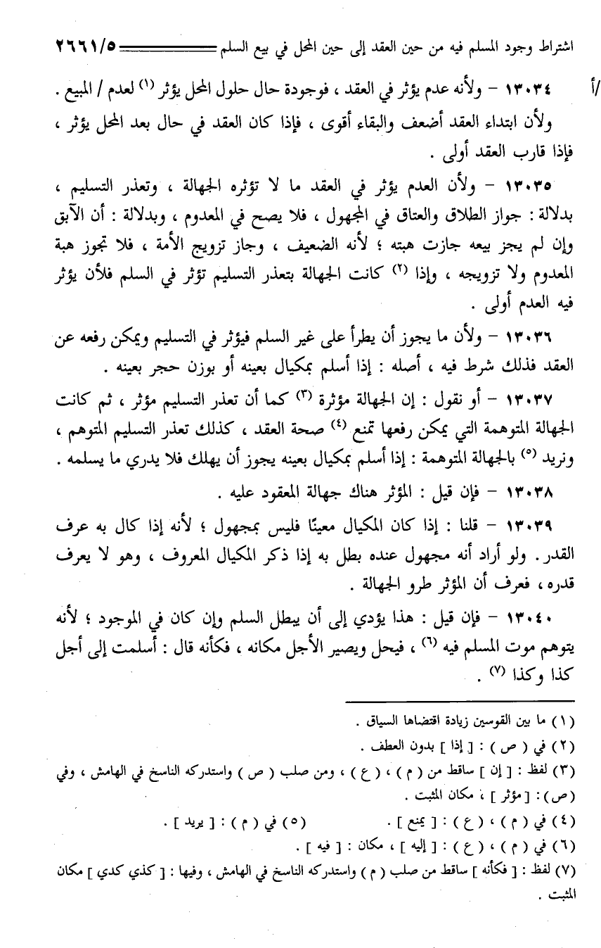 13034 - ولأنه عدم يؤثر في العقد، فوجوده حال حلول المحل يؤثر لعدم/ المبيع.