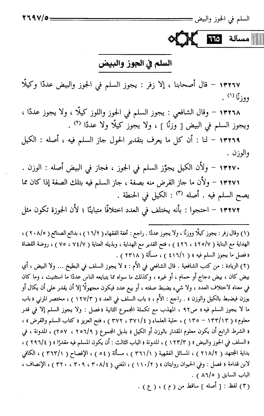 13267 - قال أصحابنا، إلا زفر: يجوز السلم في الجوز والبيض عدداً وكيلاً ووزناً.