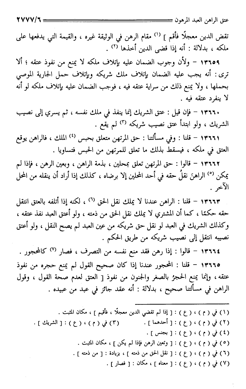 13665 - قلنا: المحجور عندنا إذا كان صحيح القول لم يمنع حجره من نفوذ عتقه، وإنما يمنع الحجر بالصغر والجنون من نفوذ] العتق لعدم صحة القول، وقول الراهن في مسألتنا صحيح، بدلالة: أنه عقد جائز في عبد من عبيده.