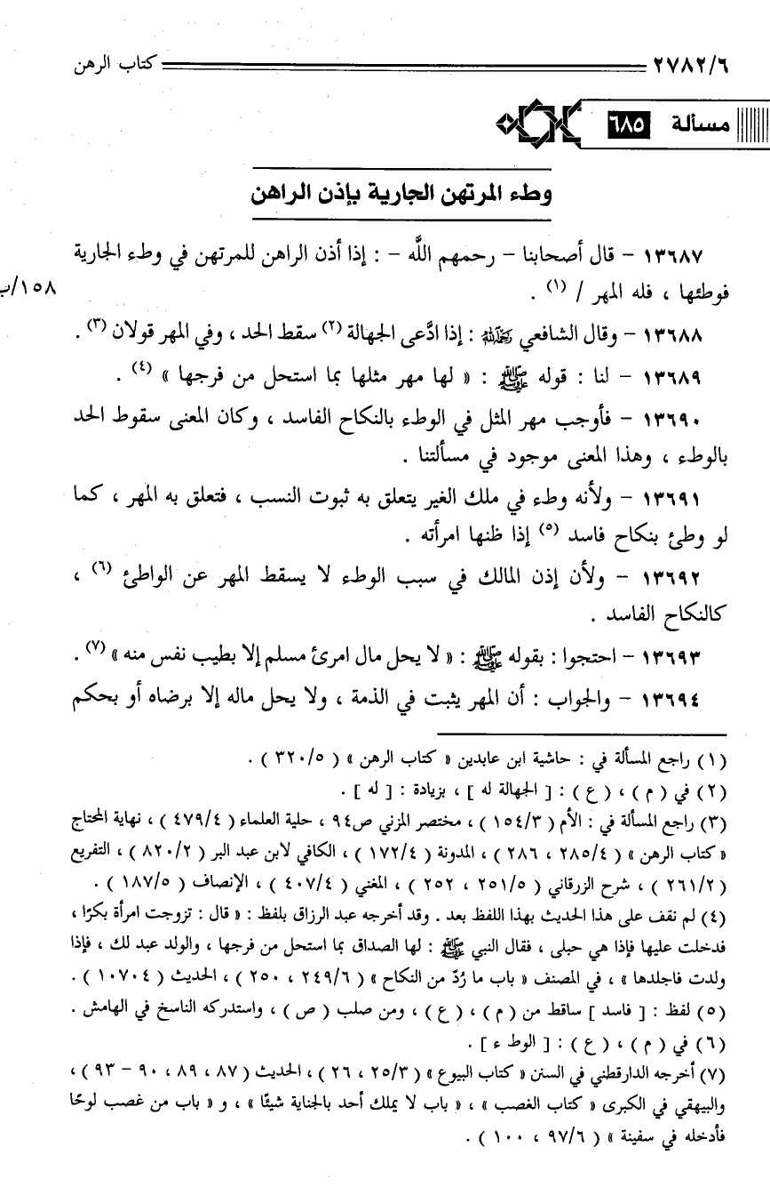 13687 - قال أصحابنا- رحمهم الله-: إذا أذن الراهن للمرتهن في وطء الجارية فوطئها، فله المهر/. ... 158/ب.