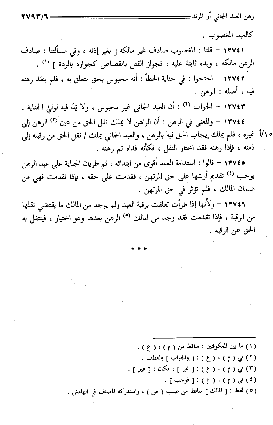 13742 - احتجوا: في جناية الخطأ/ أنه محبوس بحق متعلق به، فلم ينفذ رهنه فيه، أصله: الرهن.
