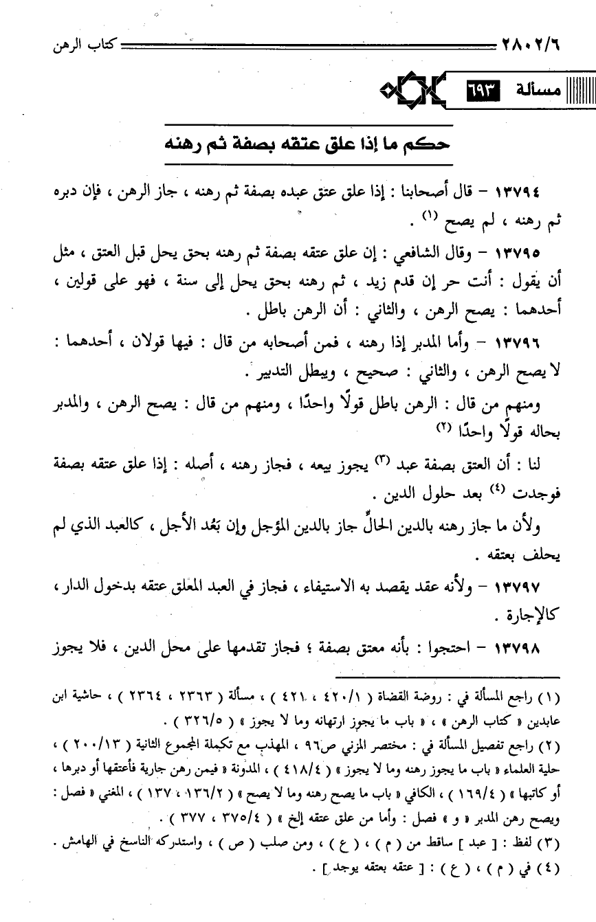 13798 - احتجوا: بأنه معتق بصفة؛ فجاز تقدمها على محل الدين، فلا يجوز