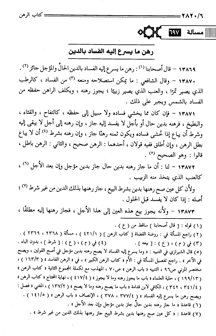 13869 - قال أصحابنا: رهن ما يسرع إليه الفساد بالدين الحال والمؤجل جائز.