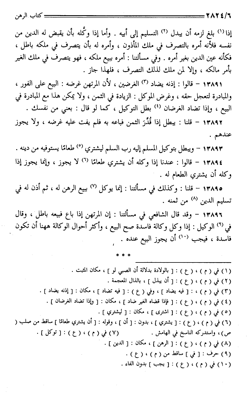 13895 - قلنا: وكذلك في مسألتنا: إنما يوكل ببيع الرهن له، ثم أذن له في تسليم الدين من ثمنه.