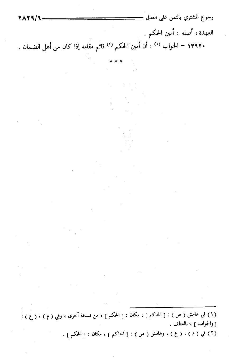 13920 - الجواب: أن أمين الحكم قائم مقامه إذا كان من أهل الضمان.