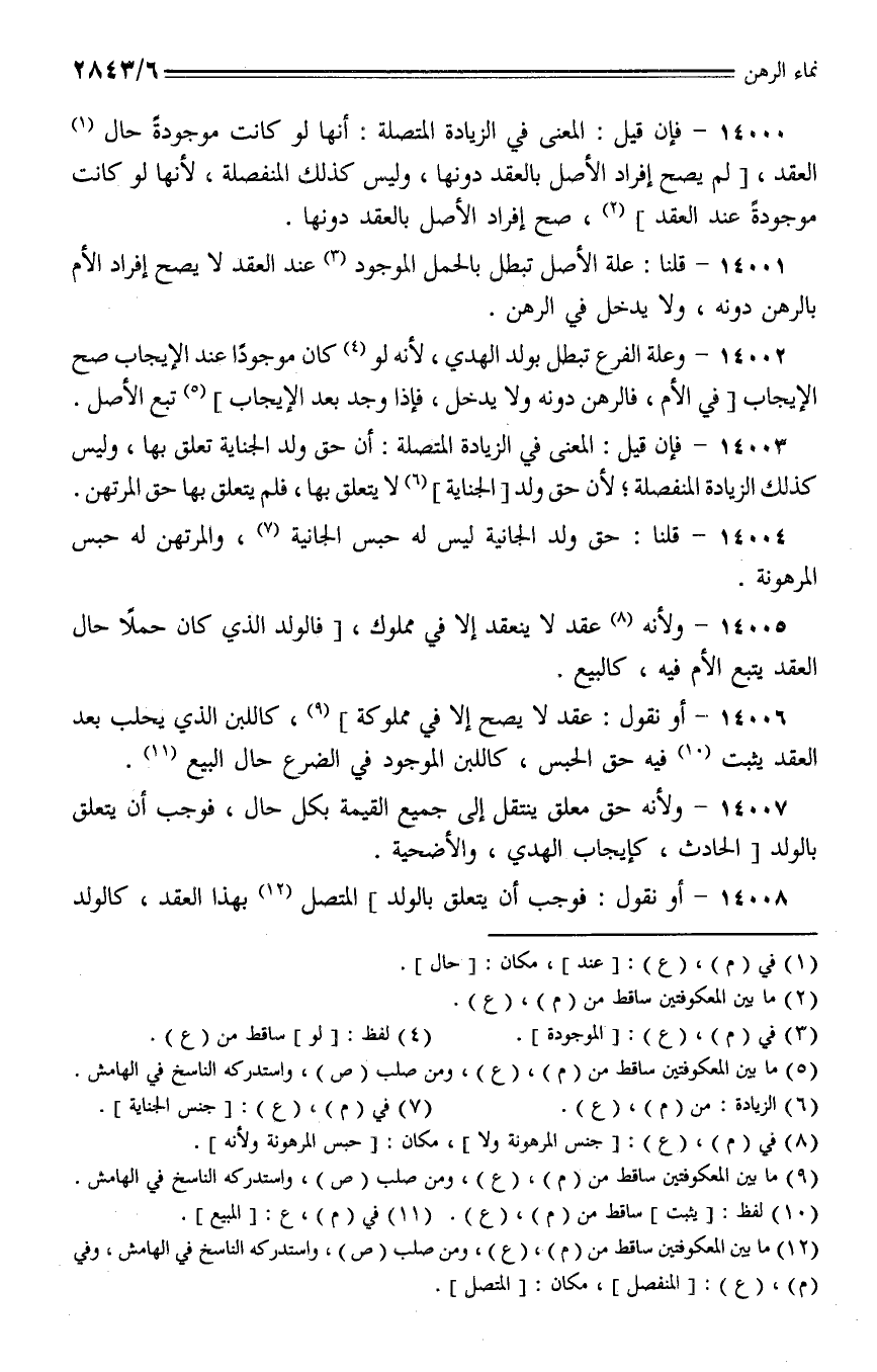 14002 - وعلة الفرع تبطل بولد الهدي، لأنه لو كان موجودا عند الإيجاب صح الإيجاب] في الأم، فالرهن دونه ولا يدخل، فإذا وجد بعد الإيجاب [تبع الأصل.
