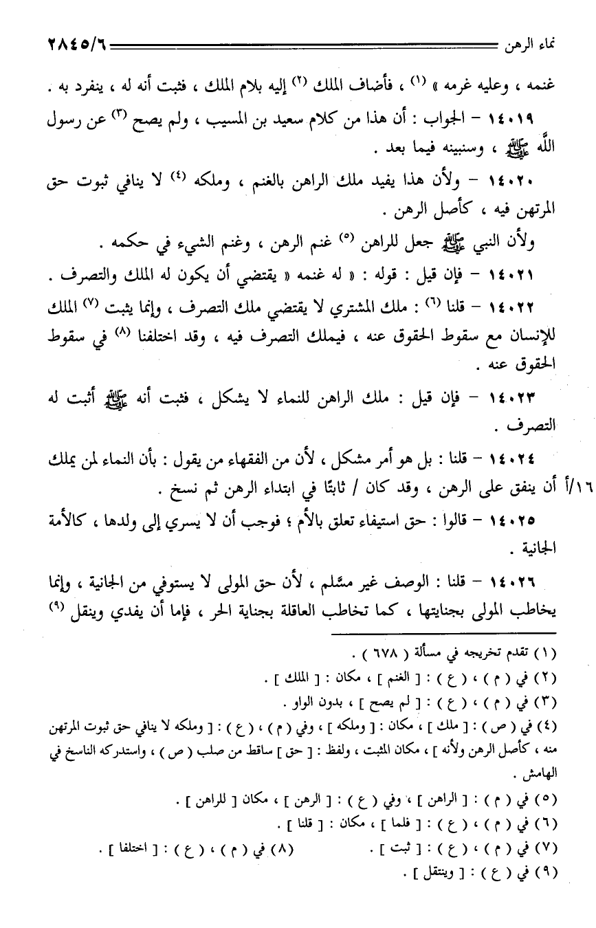 14024 - قلنا: بل هو أمر مشكل، لأن من الفقهاء من يقول: بأن النماء لمن يملك 161/أأن ينفق على الرهن، وقد كان /ثابتا في ابتداء الرهن ثم نسخ.