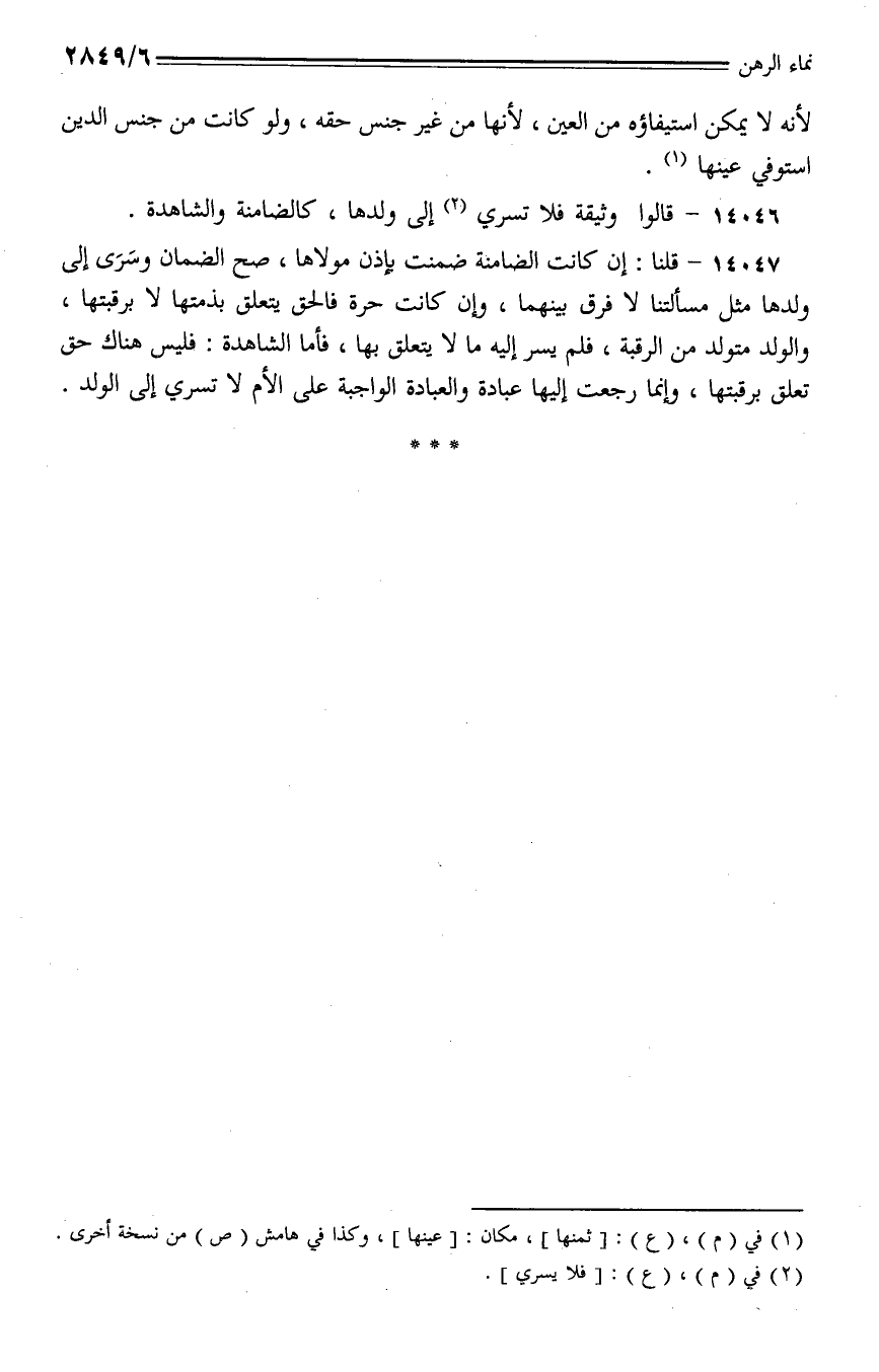 14046 - قالوا وثيقة فلا تسري إلى ولدها، كالضامنة والشاهدة.