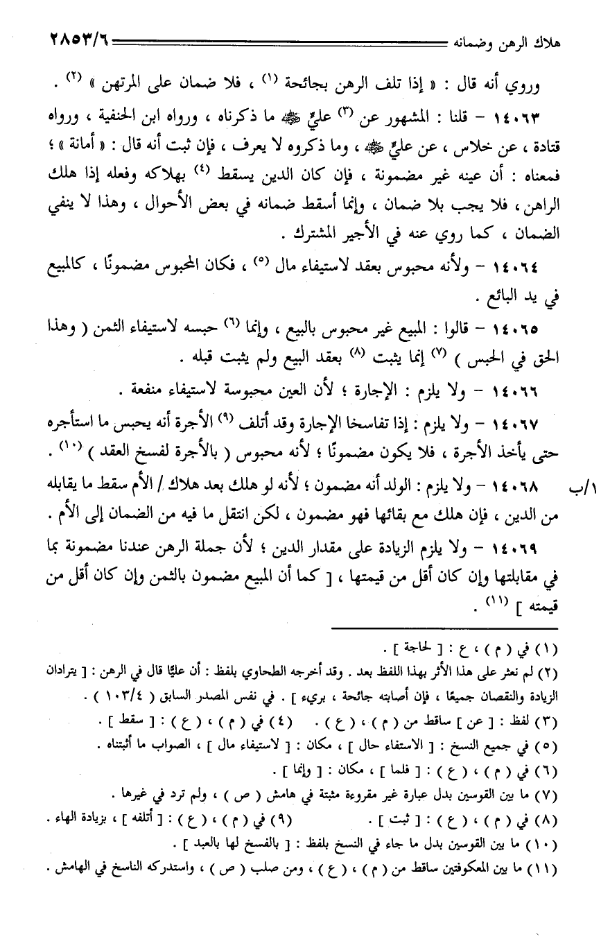 14063 - قلنا: المشهور عن علي رضي الله عنه ما ذكرناه، ورواه ابن الحنفية، ورواه قتادة، عن خلاس، عن علي رضي الله عنه، وما ذكروه لا يعرف، فإن ثبت أنه قال: (أمانة)؛ فمعناه: أن عينه غير مضمونة، فإن كان الدين يسقط بهلاكه وفعله إذا هلك الراهن، فلا يجب بلا ضمان، وإنما أسقط ضمانه في بعض الأحوال، وهذا لا ينفي الضمان، كما روي عنه في الأجير المشترك.