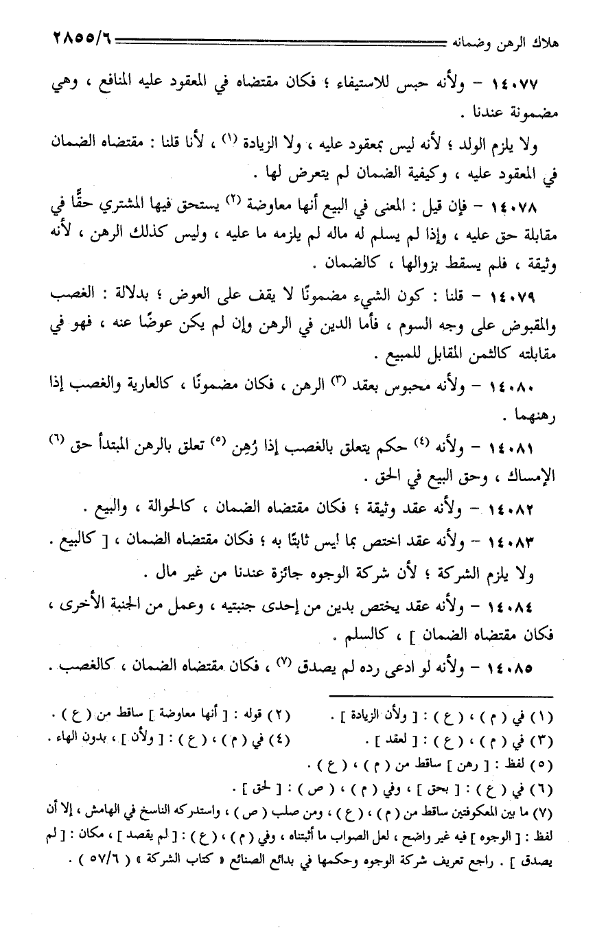14979 - قلنا: كون الشيء مضمونا لا يقف على العوض؛ بدلالة: الغصب والمقبوض على وجه السوم، فأما الدين في الرهن وإن لم يكن عوضا عنه، فهو في مقابلته كالثمن المقابل للمبيع.