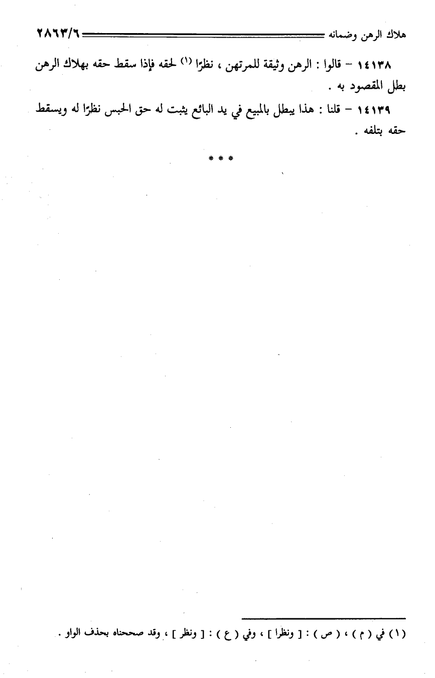 14138 - قالوا: الرهن وثيقة للمرتهن، نظرا لحقه فإذا سقط حقه بهلاك الرهن بطل المقصود به.