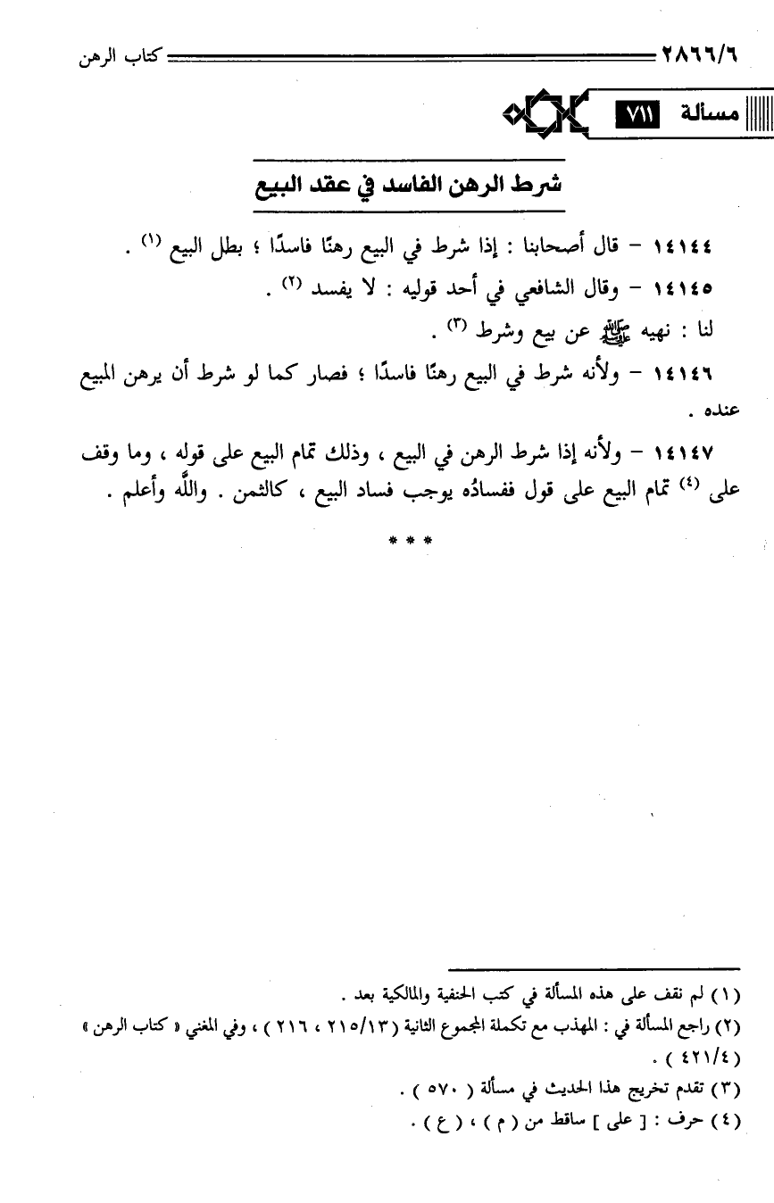 14147 - ولأنه إذا شرط الرهن في البيع، وذلك تمام البيع على قوله، وما وقف على تمام البيع على قول ففساده يوجب فساد البيع، كالثمن. والله وأعلم.