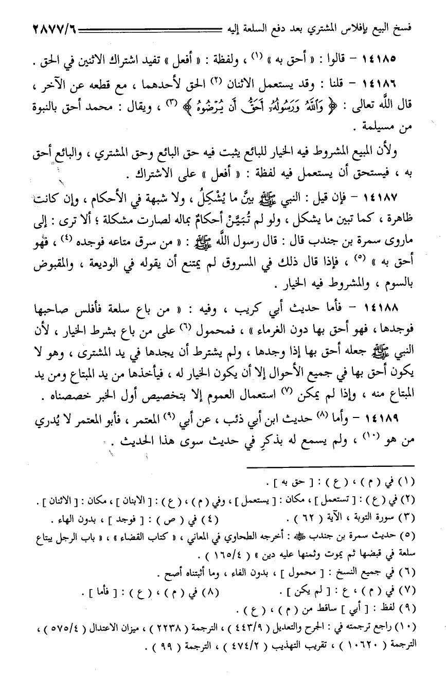 14187 - فإن قيل: النبي - صلى الله عليه وسلم - بين ما يشكل، ولا شبهة في الأحكام، وإن كانت ظاهرة، كما تبين ما يشكل، ولو لم تبين أحكام بماله لصارت مشكلة؛ ألا ترى: إلى ما روى سمرة بن جندب قال: قال رسول الله - صلى الله عليه وسلم -: (من سرق متاعه فوجده، فهو أحق به)، فإذا قال ذلك في المسروق لم يمتنع أن يقوله في الوديعة، والمقبوض بالسوم، والمشروط فيه الخيار.