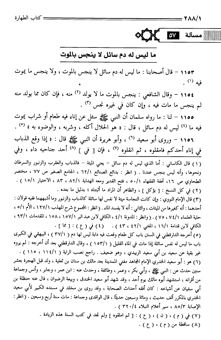 1153 - قال أصحابنا: ما ليس له دم سائل لا ينجس بالموت، ولا ينجس ما يموت فيه.