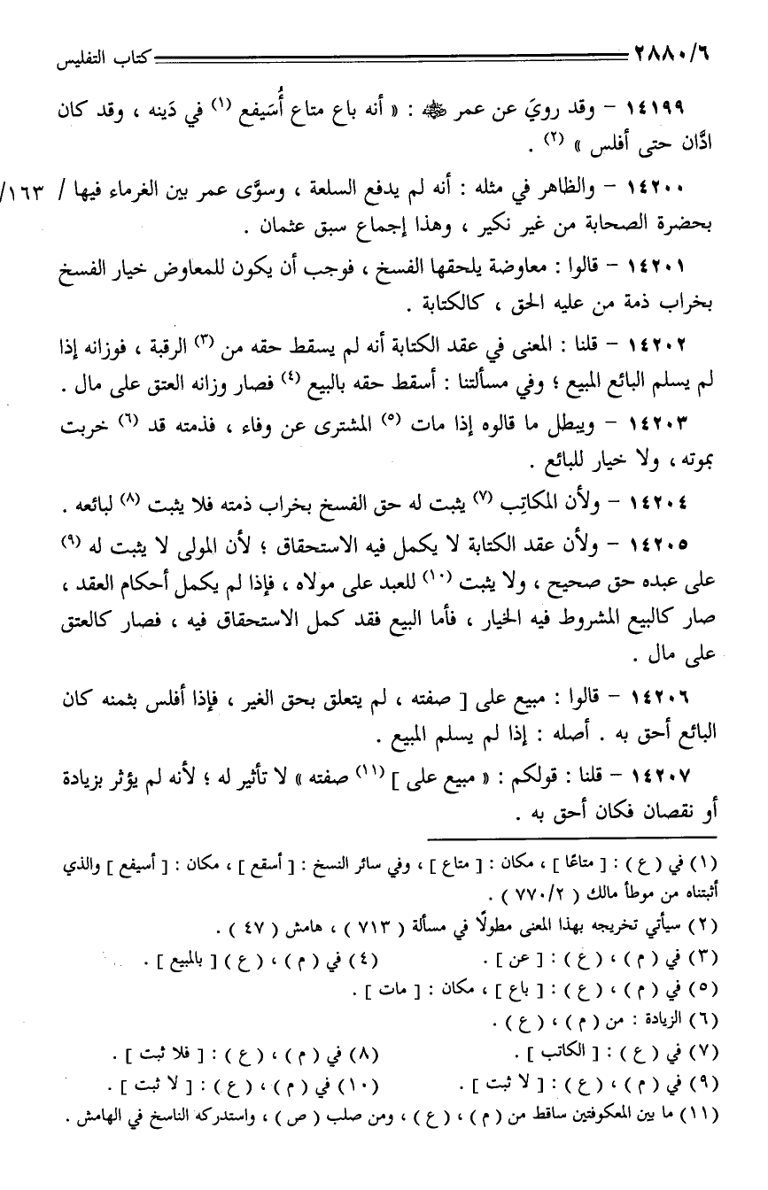 14200 - والظاهر في مثله: أنه لم يدفع السلعة، وسوى عمر بين الغرماء فيها/163/أبحضرة الصحابة من غير نكير، وهذا إجماع سبق عثمان.