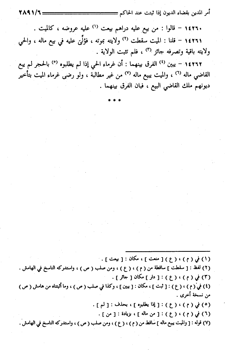 14260 - قالوا: من بيع عليه دراهم بيعت عليه عروضه، كالميت.