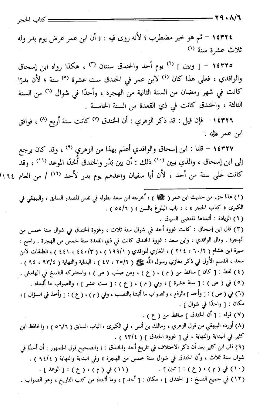14326 - فإن قيل: قد ذكر الزهري: أن الخندق كانت سنة أربع، فوافق ابن عمر - رضي الله عنه -.