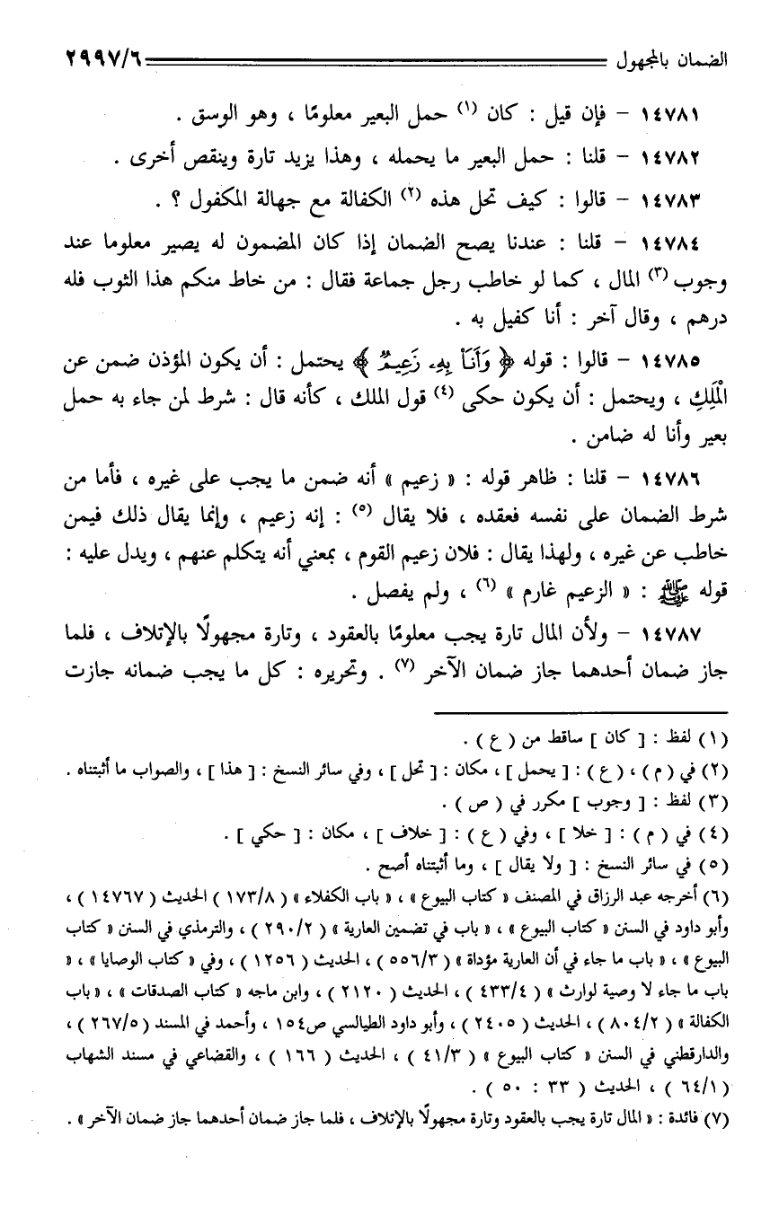 14787 - ولأن المال تارة يجب معلومًا بالعقود، وتارة مجهولًا بالإتلاف، فلما جاز ضمان أحدهما جاز ضمان الآخر. وتحريره: كل ما يجب ضمانه جازت
