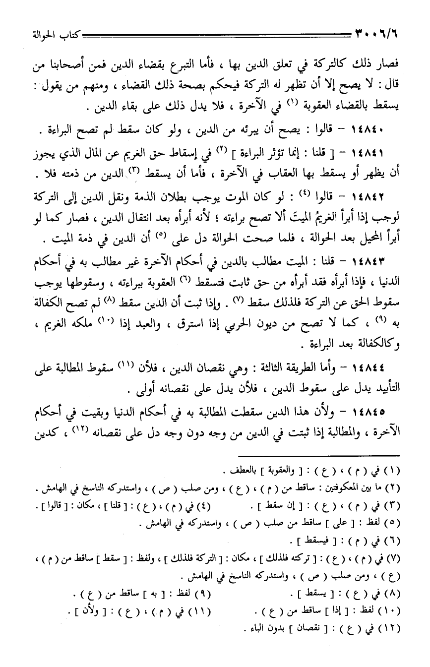 14841 - [قلنا: إنما تؤثر البراءة] في إسقاط حق الغريم عن المال الذي يجوز أن يظهر أو يسقط بها العقاب في الآخرة، فأما أن يسقط الدين من ذمته فلا.